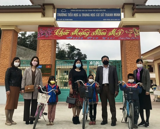 Sáng ngày 16/2/2022, đại diện cán bộ, công chức, nhân viên cơ quan Ủy ban MTTQ Việt Nam trao tặng xe đạp cho 03 cháu học sinh có hoàn cảnh khó khăn tại trường tiểu học và Trung học cơ sở Thanh Minh, thành phố Điện Biên Phủ.