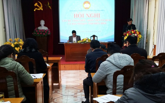 Sáng 18/01/2021, Công đoàn cơ sở Ủy ban MTTQ Việt Nam tỉnh Điện Biên phối hợp với lãnh đạo cơ quan tổ chức Hội nghị cán bộ, công chức năm 2021. Dự và chủ trì Hội nghị có đồng chí Lò Văn Mừng, UVBTVTU, Trưởng Ban Dân vận Tỉnh ủy, Chủ tịch Ủy ban MTTQ Việt Nam tỉnh Điện Biên; đồng chí Giàng Trọng Bình – Chủ tịch Công đoàn, Phó Chủ tịch Ủy ban MTTQ Việt Nam tỉnh Điện Biên.