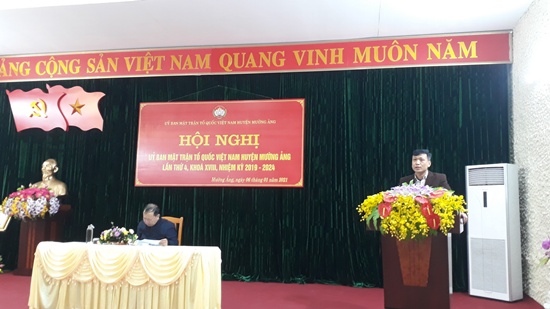 Chiều ngày 06/01/2021, Ban Thường trực Ủy ban MTTQ Việt Nam huyện Mường Ảng tổ chức Hội nghị Ủy ban MTTQ Việt Nam huyện lần thứ 04, khóa XVIII, nhiệm kỳ 2019 - 2024 để đánh giá tổng kết công tác Mặt trận năm 2020, Chương trình phối hợp và thống nhất hành động năm 2021. Dự Hội nghị có Đồng chí Nguyễn Thị Nga, Phó Chủ tịch Thường trực Ủy ban MTTQ Việt Nam tỉnh; đồng chí Hà Quốc Thịnh, Phó Bí thư Thường trực Huyện ủy; đồng chí Hà Cầm Hồng, UVBTV Huyện ủy, Phó Chủ tịch HĐND huyện cùng các đồng chí lãnh đạo UBND huyện, lãnh đạo các phòng, ban, đơn vị, khối đoàn thể huyện; các vị Ủy viên Ủy ban MTTQ Việt Nam huyện, khóa XVIII, nhiệm kỳ 2019 - 2024.