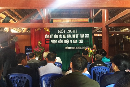 Chiều ngày 09/12/2020 Ủy ban MTTQ Việt Nam xã Thanh Nưa tổ chức Hội nghị Tổng kết công tác mặt trận năm 2020 và Nêu ra phương hương nhiệm vụ năm 2021. Dự hội nghị có Đồng chí Quàng Văn Phong UVBTT - Trưởng ban Phong trào Ủy ban MTTQ Việt Nam tỉnh cùng các đồng chí đại diện Đảng ủy, HĐND, UBND, Ủy ban MTTQ Việt Nam, các ban nghành đoàn thể và 13 Ban Công tác Mặt trận thôn, bản trên địa bàn xã.