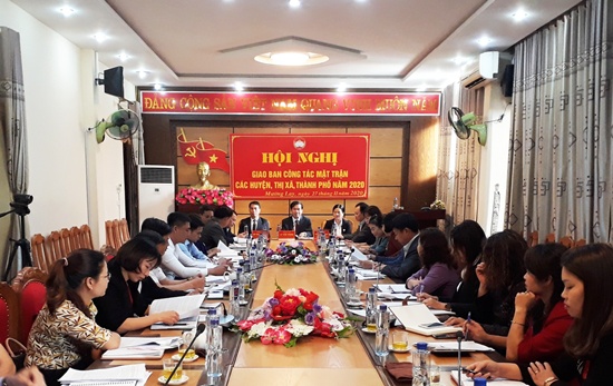Ngày 27/11, Ban Thường trực Ủy ban MTTQ Việt Nam tỉnh Điện Biên tổ chức Hội nghị giao ban tổng kết công tác Mặt trận các huyện, thị xã, thành phố năm 2020 tại thị xã Mường Lay. Về phía Ủy ban MTTQ Việt Nam tỉnh có đồng chí Lò Văn Mừng, UVBTVTU, Trưởng Ban Dân vận Tỉnh ủy, Chủ tịch Ủy ban MTTQ Việt Nam tỉnh; đồng chí Nguyễn Thị Nga, Phó Chủ tịch Thường trực Ủy ban MTTQ Việt Nam tỉnh; về phía Thị ủy Mường Lay có đồng chí Vũ Ngọc Vương, Bí thư Thị ủy; dự hội nghị còn có các đồng các đồng chí trongBan Thường trực Ủy ban MTTQ Việt Nam tỉnh; các đồng chí Thường trực Thị ủy, HĐND, lãnh đạo UBND thị xã Mường Lay; Ban Dân vận Thị ủy; Ban Thường trực Ủy ban MTTQ Việt Nam thị xã; các tổ chức chính trị - xã hội thị xã; đại diện lãnh đạo các ban chuyên môn, Văn phòng Ủy ban MTTQ Việt Nam tỉnh; Chủ tịch và Phó Chủ tịch Ủy ban MTTQ Việt Nam các huyện, thành phố; Chủ tịch và Phó Chủ tịch Ủy ban MTTQ Việt Nam các xã, phường thuộc thị xã Mường Lay; phóng viên Trung tâm Văn hóa - Truyền thanh - Truyền hình thị xã.