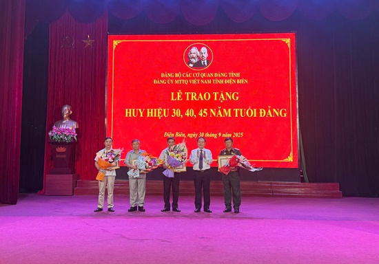 Sáng ngày 30/9/2025, Đảng ủy MTTQ Việt Nam tỉnh long trọng tổ chức Lễ trao tặng Huy hiệu Đảng cho các đồng chí đảng viên thuộc Đảng bộ. Dự buổi lễ có đồng chí Mùa A Sơn, Phó Bí thư Thường trực Tỉnh ủy, Bí thư Đảng ủy các cơ quan Đảng tỉnh; đồng chí Mùa A Vảng, Ủy viên Ban Chấp hành Trung ương Đảng, Ủy viên Ban Thường vụ Tỉnh ủy, Bí thư Đảng ủy MTTQ Việt Nam tỉnh, Chủ tịch Ủy ban MTTQ Việt Nam tỉnh; các đồng chí trong Ban Thường vụ, Ban Chấp hành Đảng ủy MTTQ Việt Nam tỉnh cùng toàn thể cán bộ, đảng viên cơ quan.