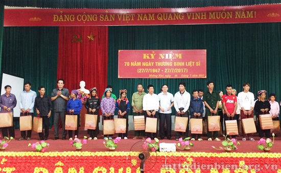Nhân kỷ niệm 70 năm Ngày Thương binh, liệt sĩ (27/7/1947-27/7/2017), ngày 24/7, đồng chí Lò Văn Mừng - UVBTVTU, Chủ tịch Ủy ban MTTQ tỉnh đi thăm, tặng quà gia đình thương binh Trịnh Văn Châu, trú tại tổ 1, phường Mường Thanh, thành phố Điện Biên Phủ. Cùng đi có đại diện lãnh đạo Phòng Lao động - Thương binh và Xã hội, lãnh đạo UBND phường Mường Thanh thành phố Điện Biên Phủ.