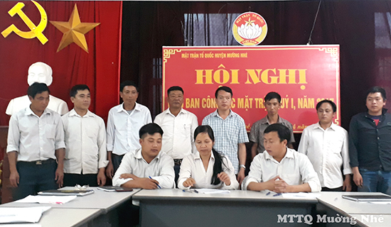 Chiều ngày 07/4/2017, Ban Thường trực Ủy ban MTTQ huyện Mường Nhé tổ chức Hội nghị giao ban công tác Mặt trận quý I và ký kết giao ước thi đua năm 2017 với Ban Thường trực Ủy ban MTTQ 11 xã trong huyện. Dự và chủ trì Hội nghị Đồng chí Giàng A Trừ - HUV, Chủ tịch Ủy ban MTTQ huyện, dự hội nghị còn có các đồng chí trong Ban Thường trực Ủy ban MTTQ huyện, các đồng chí Chủ tịch, Phó Chủ tịch Ủy ban MTTQ 11 xã và các đồng chí cán bộ chuyên trách Ủy ban MTTQ huyện.