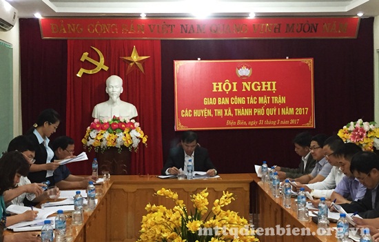 Sáng ngày 31/3/2017, MTTQ tỉnh tổ chức Hội nghị giao ban công tác Mặt trận với các huyện, thị xã, thành phố. Dự và chủ trì hội nghị có đồng chí Lò Văn Mừng, UVBTVTU, Chủ tịch Ủy ban MTTQ tỉnh; các đồng chí trong Ban Thường trực Ủy ban MTTQ tỉnh, lãnh đạo Ủy ban MTTQ cấp huyện, các đồng chí cán bộ, chuyên viên cơ quan Ủy ban MTTQ tỉnh