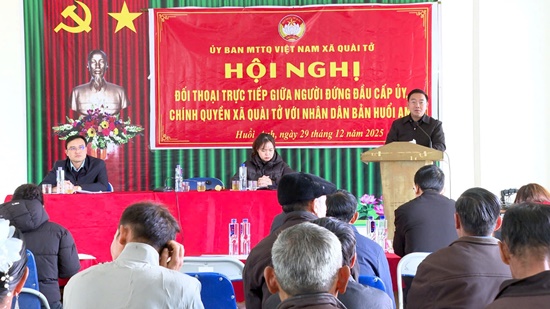 Sáng 29/12, Ban Thường trực Ủy ban MTTQ Việt Nam xã Quài Tở tổ chức Hội nghị đối thoại trực tiếp giữa người đứng đầu cấp ủy, chính quyền xã với Nhân dân bản Huổi Anh, nhằm lắng nghe, giải quyết kịp thời những kiến nghị, phản ánh chính đáng của Nhân dân. Đồng chí Giàng A Dế – Bí thư Đảng ủy, Chủ tịch HĐND xã; đồng chí Nhữ Duy Đông – Phó Bí thư Đảng ủy, Chủ tịch UBND xã và đồng chí Lê Thị Thanh Thùy – Ủy viên Ban Thường vụ, Chủ tịch Ủy ban MTTQ Việt Nam xã đồng chủ trì. Tham dự hội nghị có các đồng chí trong Ban Thường vụ Đảng ủy; Thường trực HĐND, lãnh đạo UBND xã; Ban Thường trực Ủy ban MTTQ Việt Nam xã; đại diện các phòng, ban, đoàn thể của xã; bí thư chi bộ, trưởng bản các bản Ten Hon, Há Dùa, Thẩm Nậm, Thẳm Nặm cùng đông đảo Nhân dân bản Huổi Anh.