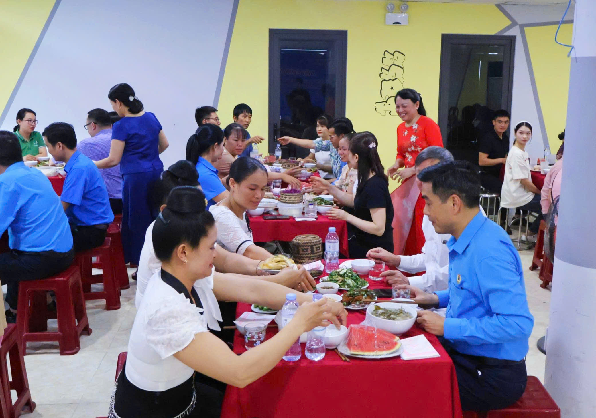 Ngày 28/7, Liên đoàn Lao động (LĐLĐ) tỉnh Điện Biên phối hợp với Ban Giám đốc Công ty Cổ phần Thương mại Xuất nhập khẩu Điện Biên tổ chức chương trình “Bữa cơm Công đoàn” cho 50 đoàn viên, người lao động đang làm việc tại đơn vị. Tham dự chương trình có đồng chí Tẩn Minh Long – Ủy viên Ban Chấp hành Đảng bộ tỉnh, Ủy viên Ban Chấp hành Tổng LĐLĐ Việt Nam, Phó Chủ tịch Ủy ban MTTQ Việt Nam tỉnh, Chủ tịch LĐLĐ tỉnh; đồng chí Lầu Thị Thanh Hương – Phó Chủ tịch LĐLĐ tỉnh, Trưởng Ban Công tác Công đoàn; đại diện Ban Giám đốc Công ty cùng toàn thể đoàn viên, người lao động Công đoàn cơ sở.