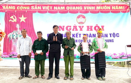 Đồng chí Lò Văn Cương - Ủy viên Ban Thường vụ Tỉnh ủy, Phó Chủ tịch UBND tỉnh dự Ngày hội Đại đoàn kết toàn dân tộc tại bản Chua Lú, xã Pú Nhung